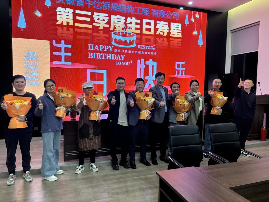 在這個秋高氣爽、豐收在望的季節(jié),中達橋梁公司迎來了2024年第三季度的溫馨時刻——員工集體生日慶典。近日,在公司周密的策劃與...